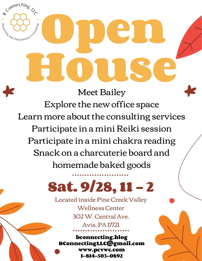 It’s an exciting time at B Connecting, LLC, and I invite you to be a part of it by attending the Open House, by scheduling a consulting session, Reiki healing session, or chakra reading, or by subscribing to the blog.