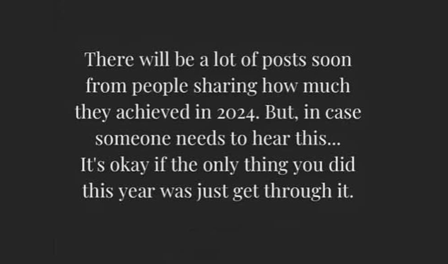 Sound a little harsh? Perhaps. But, I’ve worked with too many people who struggle to recognize their own progress and accomplishments because they think they didn’t do enough compared to so-and-so. That way of thinking leads us to believe that I am not enough, and that’s not okay. So, if you are one of the people who “just” got through 2024, I see you. And you need to drop the “just.”