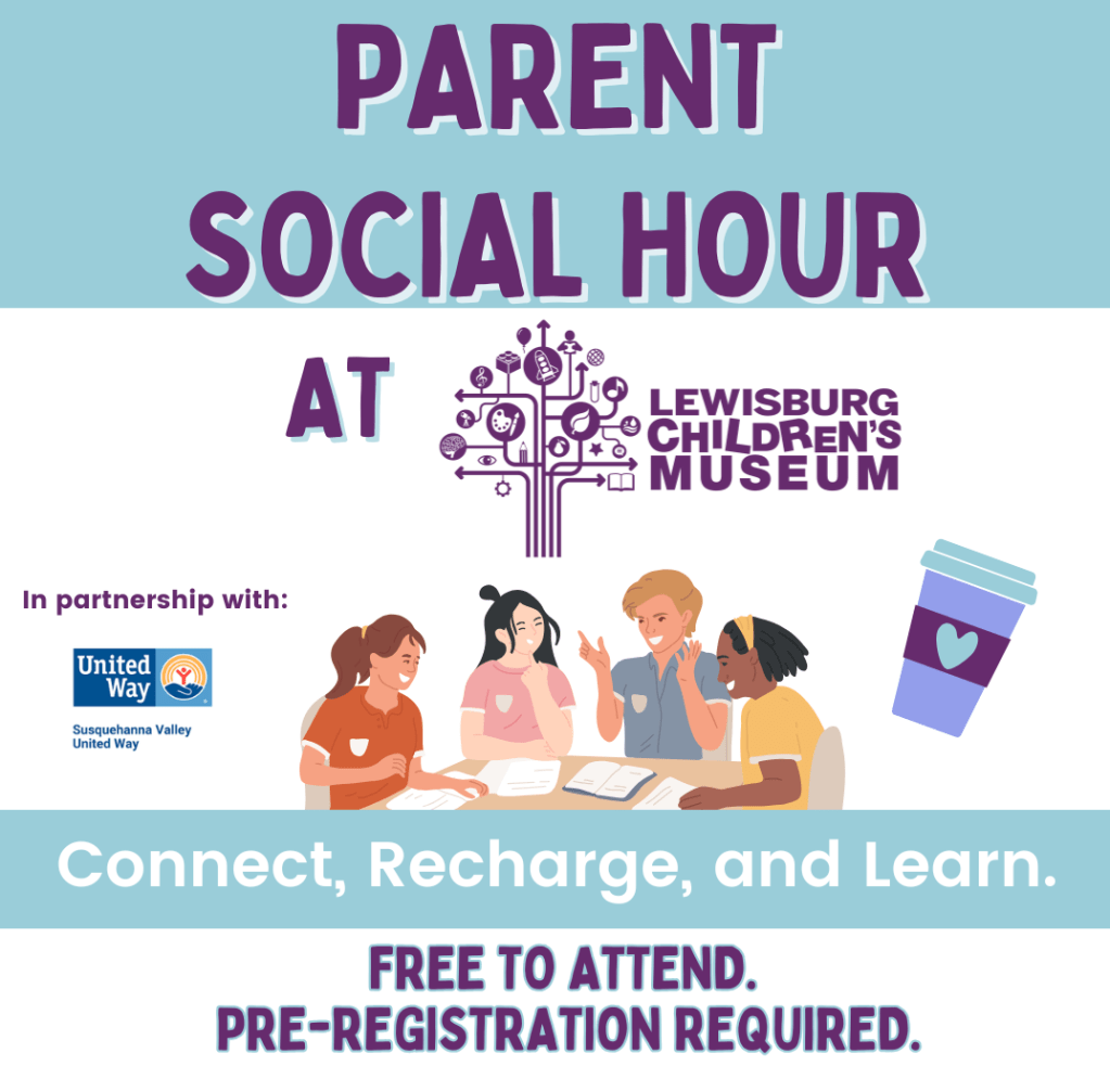 When I started B Connecting, LLC, I was excited about the opportunity to collaborate with other agencies and providers to bring more attention to mental health, parenting, self-care, and overall wellness in our communities. Specifically, I was excited about the possibility of working with non-profits that could fund educational programming for parents, first responders, and educators. I’m thrilled now to announce that one such collaboration has come to fruition: in partnership with the Susquehanna Valley United Way, I will be leading three free Parent Social Hours at the Lewisburg Children’s Museum in February and March.