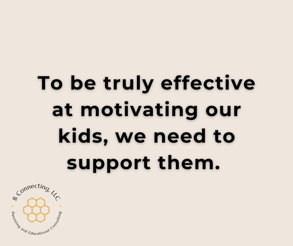 So, we want to keep our kids motivated for the things that are right in front of them. We need to keep in mind that the things that motivate kids drastically vary from one child to another, even in the same family. Not all kids are motivated by rewards. Not all kids are motivated by praise. And, most kids definitely do not get motivated when their parents tell them that they will lose their phone or other electronics or be grounded if they fail a class. In all honesty, most adolescents don’t think those negative consequences actually will happen to them, and that’s because of their developmental stage. Parents really are fighting a losing battle at times.