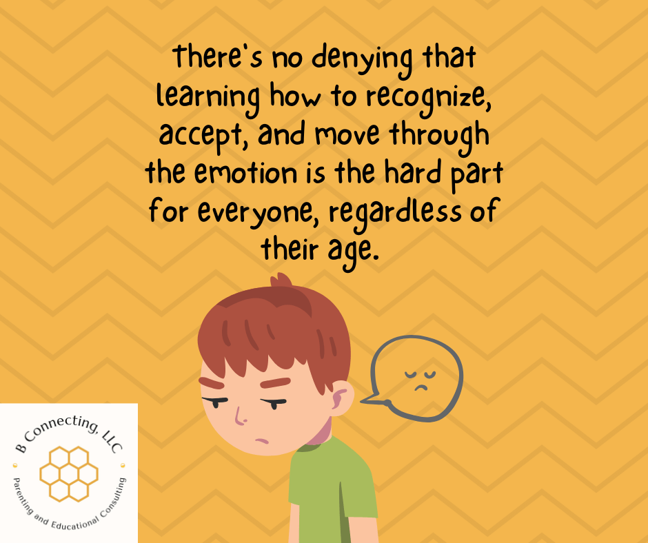 When I work with clients who get stuck in their big negative emotions, I ask them what they feel in their body. We talk about physical warning signs of negative emotions based on how they feel in their body and potential triggers. We also explore what they need to do to address that feeling, because it is much easier to relax shoulders that are touching earlobes or to unclench fists whose knuckles are turning white than it is to make anger disappear. And, I guide my clients through utilizing bi-lateral brain breaks and other methods designed to regulate the nervous system to get them out of a heightened emotional state and back into a logical, thinking state. Then, they are better equipped to name the emotion, understand and accept it, and then move through it.
